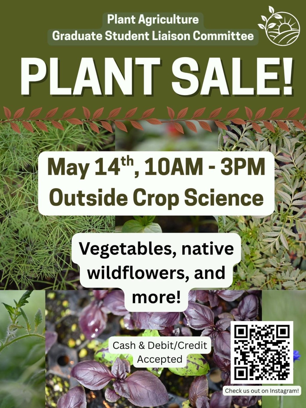 We’ll have a wide variety of plants available, including vegetables, native wildflowers, and more. All proceeds support graduate students in the Plant Agriculture department.